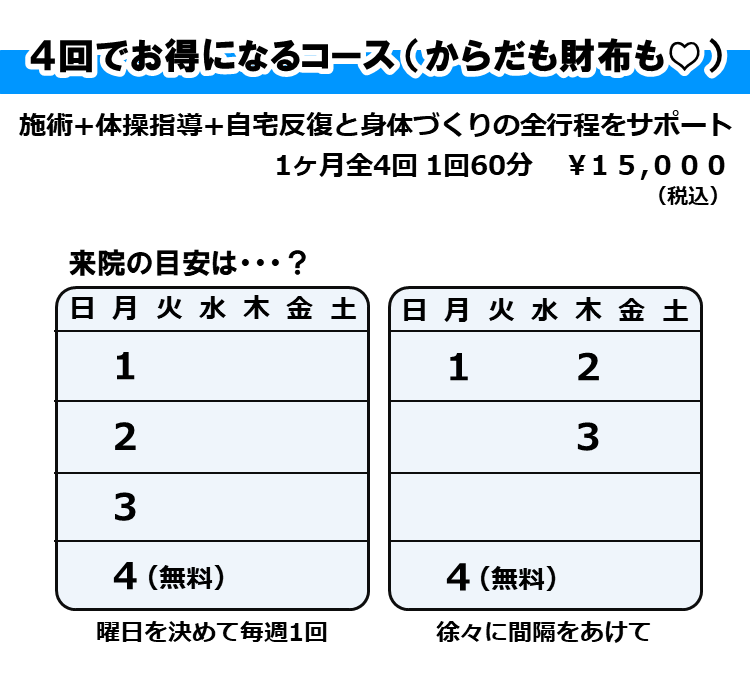 4週間、4回目の来院は 無料 にします。
